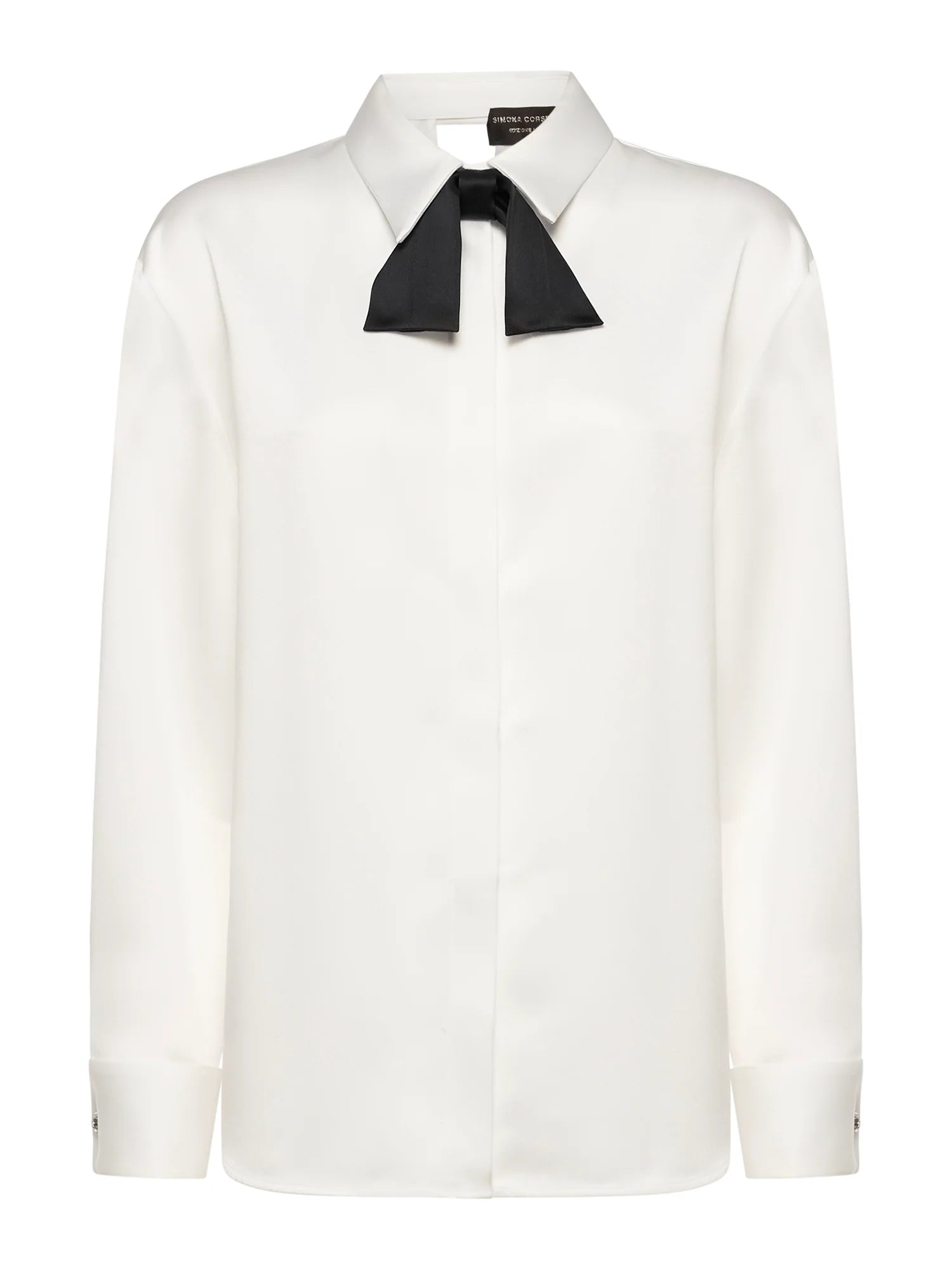 Camicia smoking in raso heavy con profonda apertura sul dietro.
