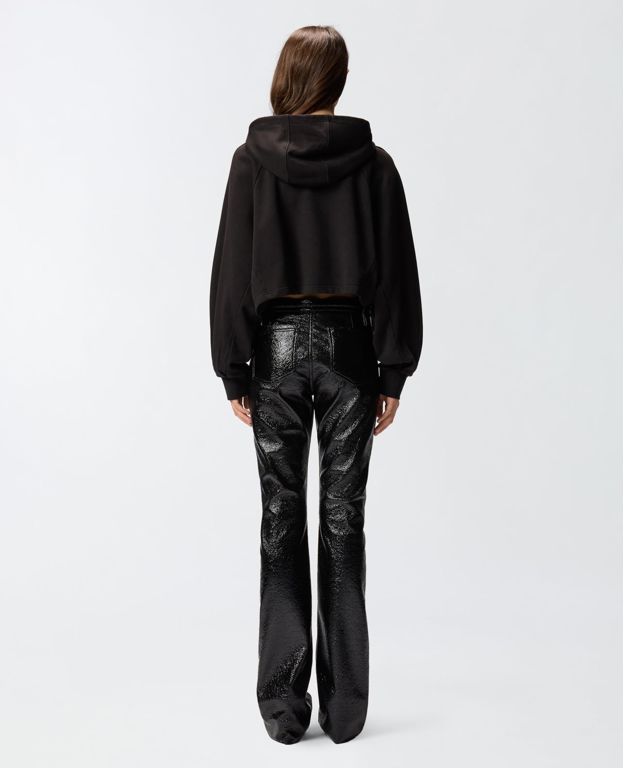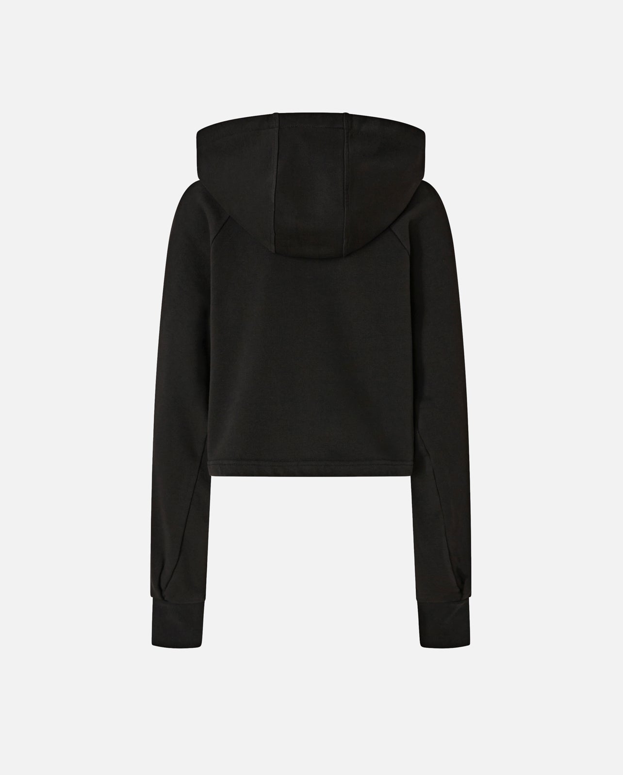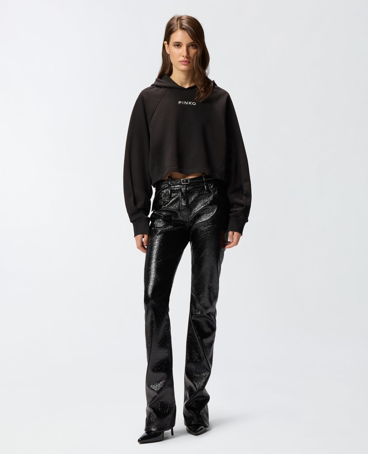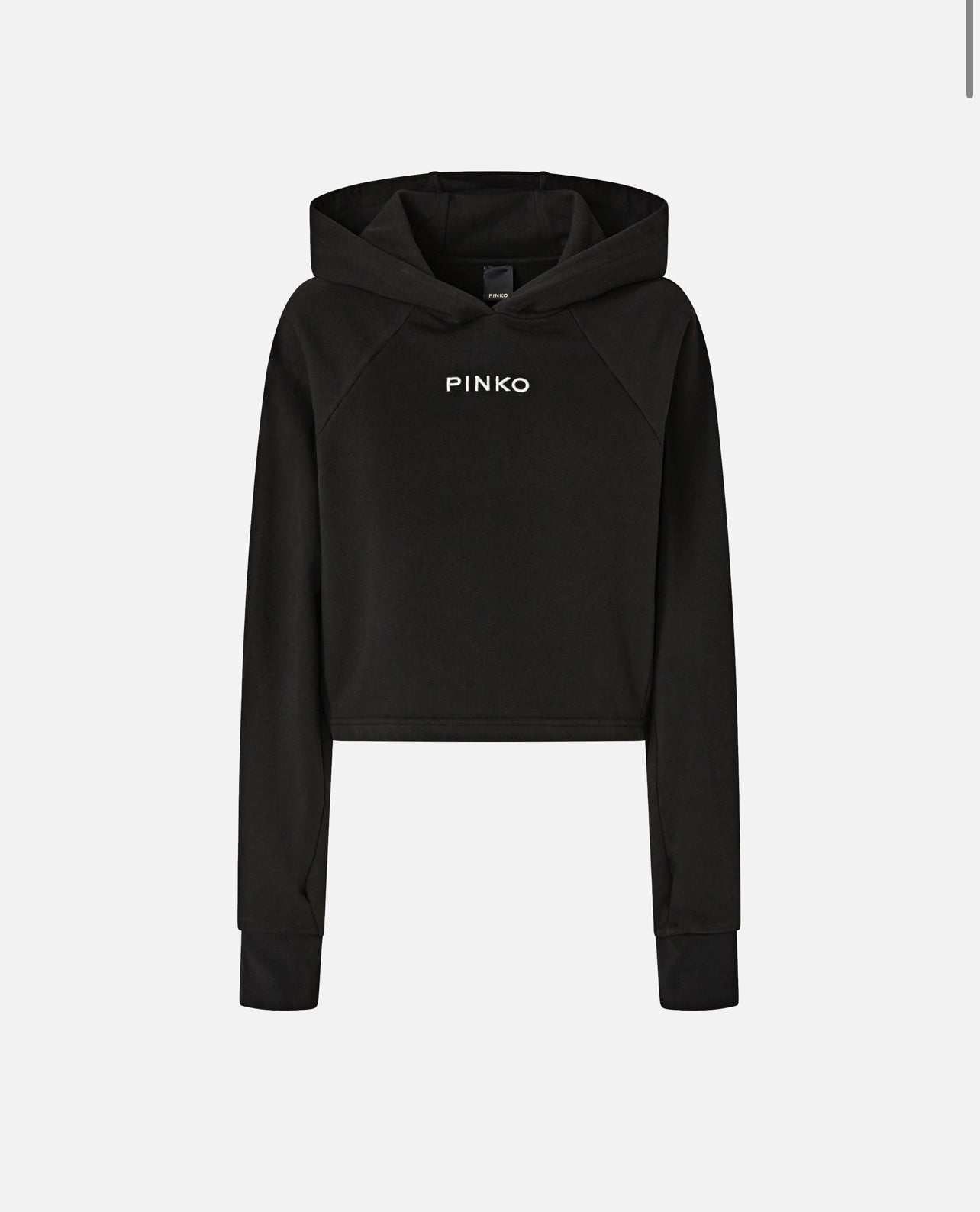 Felpa cropped in cotone con cappuccio e maniche lunghe dal taglio raglan, dotata di fondo e polsi in tessuto stretch. Il logo lettering PINKO ricamato a filo a contrasto rifinisce il capo con un tocco personalizzato.